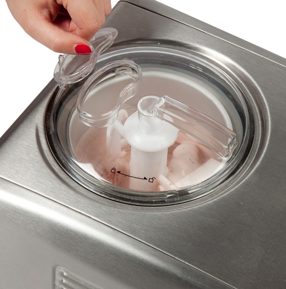 Morate med nastajanjem sladoleda dodati še kakšno sestavino? Nič lažjega. Odprite za to namenjeno okence in dodajte sestavino kar med mešanjem.