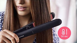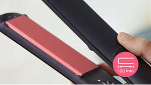 Daljši, 100 mm dolgi plošči omogočata boljši stik z lasmi, da hitreje oblikujete čudovite ravne lase.