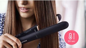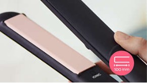 Daljši, 100 mm dolgi plošči omogočata boljši stik z lasmi, da hitreje oblikujete čudovite ravne lase.