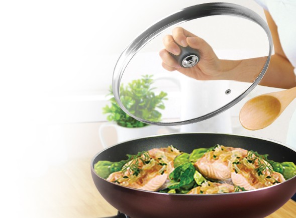 Opis:- Kakovosten steklen pokrov s trpežnim plastičnim ročajem in odprtino za uhajanje odvečne pare