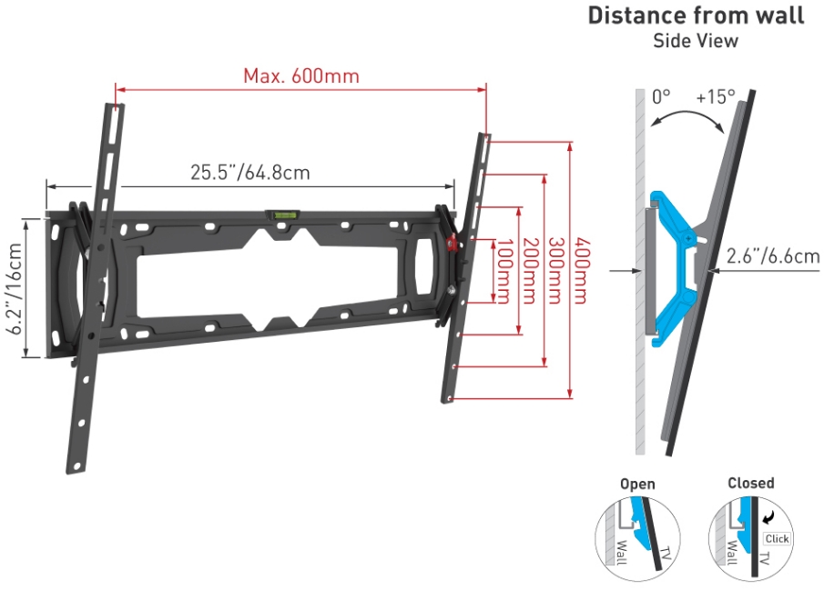 - Za TV, ki ustrezajo standardom VESA in non VESA do: 600 x 400 mm