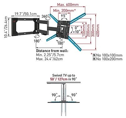 Po namestitvi je TV blizu stene. V položaju 0/1 je TV od stene oddaljen le 25mm, v položaju 3/4 pa 60mm