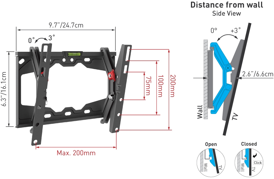 - Za TV, ki ustrezajo standardom VESA in non VESA do: 200 x 200 mm