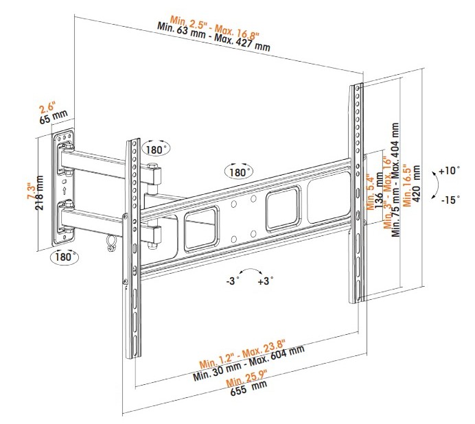 Nosilci so izdelani iz kakovostnega jekla, kar jih naredi izjemno robustne, vaša naprava pa ostane varno pritrjena. Vsak model nosilca testirajo s trojno nosilno težo, ki jo mora zdržati eno uro. Med testiranjem ne sme priti do nobene deformacije ali razpoke na samem nosilcu.