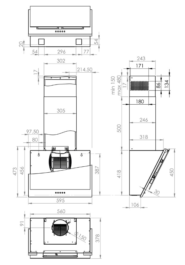 - Način postavitve - kuhinjska napa: Samostojna,stenska