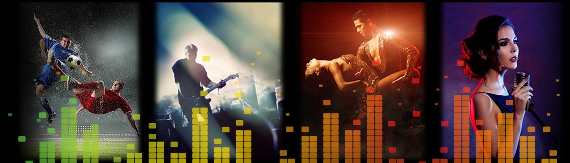 Prednastavitev izenačevalnika za lokalni zvok. Zaradi vsestranskosti lokalne prednastavitve izenačevalnika lahko še bolj uživate v različnih glasbenih zvrsteh, kot so rokovska glasba, karaoke in druge. Nogometni način omogoča še več zabave ob gledanju televizije. Izberete lahko zvok, ki se najbolj ujema s tem, kar gledate.