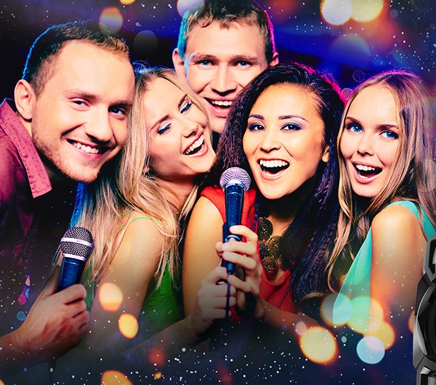 Glavna enota ima dva priključka za mikrofon, v katera lahko priključite dva mikrofona za duete s prijatelji in družinskimi člani. Petje vam olajšajo različne funkcije, kot so izklop vokalov, nadzor ključa, nadzor tempa*, nadzor glasnosti glasbe v ozadju in izenačevalnik mikrofona. Funkcija odmeva ustvari odličen učinek pri karaokah.