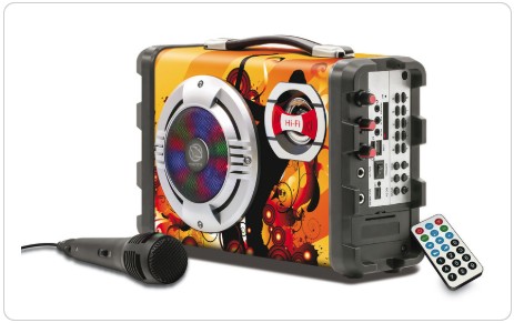 SPK1003 HELIOS je pravi multimedijski center, saj ima vgrajeno Bluetooth povezavo za povezavo z vašim pametnim telefonom ali tablico, nanj lahko priklopite ter predvajate glasbo iz USB naprav ali iz spominskih kartic, ali pa neposredno preko AUX vhoda (MP3 predvajalnika, prenosnega računalnika itd.). Equaliser bo poskrbel za optimalno nastavitev zvoka, vgrajene disco lučke pa za pravo in nepozabno vzdušje ter zabavo. Poleg vsega ima vgrajen tudi kakovosten FM radio tuner z anteno, kar pomeni, da lahko vedno poslušate tudi vaše najbolj priljubljene radijske postaje.