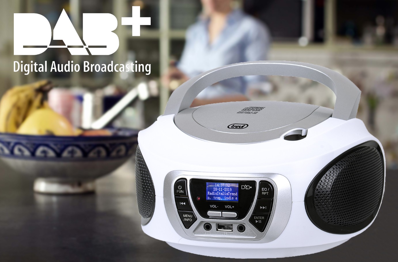 DAB+ prinaša možnosti večje ponudbe radijskih programov, ki so bolj kvalitetni in brez motenj pri sprejemu. Iskanje programov je poenostavljeno, saj namesto iskanja frekvenc priljubljenega radijskega programa preprosto izberite prednastavljeno radijsko postajo iz seznama, ki ji želite prisluhniti.