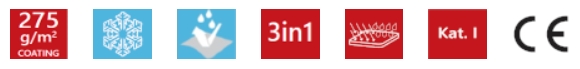 - Zunanja obloga: 100% poliester, 275 g/m2