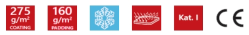 - Zunanja stran: 100% poliester, pongee tip, 275 g/m2