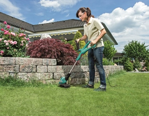 Zahvaljujoč za 90° vrtljivi glavi boste lahk robove trate uredili še bolj natančno. Glavo zavrtite s pritiskom enega gumba.