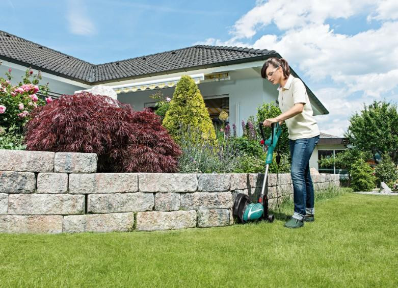 Zahvaljujoč za 90° vrtljivi glavi boste lahk robove trate uredili še bolj natančno. Glavo zavrtite s pritiskom enega gumba.