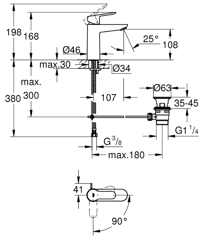 Vgrajena tehnologija GROHE EcoJoy poskrbi za manjšo porabo vode in energije, sistem GROHE QuickFix™ pa omogoča hitro in enostavno montažo z gibljivimi priključnimi cevmi in podporo za centriranje.