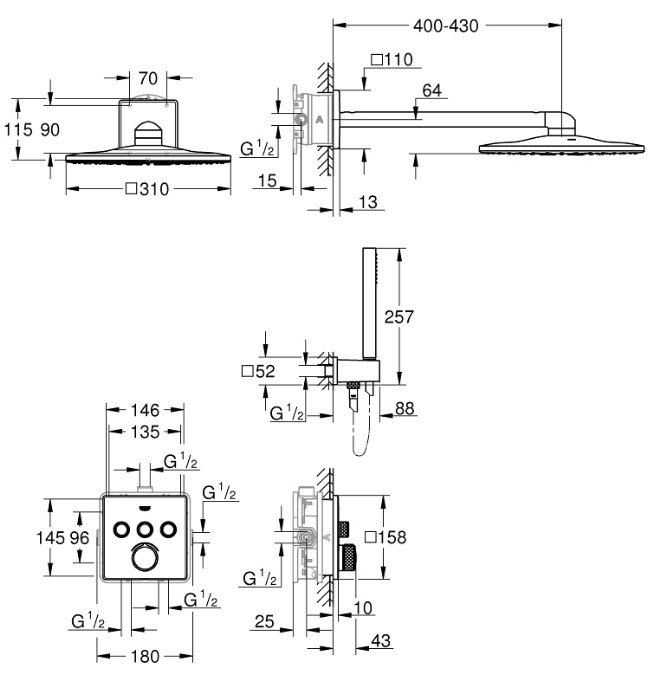 GROHE termostatska podometna armatura za tuš SmartControl, 34712000