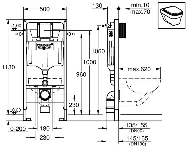 Sanitarni okvirji GROHE Rapid SL so primerni za montažo v steno ali pred steno. Omogočajo hitro in varno inštalacijo najsodobnejših visečih toaletnih školjk, bidejev, pisoarjev in umivalnikov. Z Rapid SL pri nameščanju sanitarne keramike niste več omejeni na štiri obstoječe stene. Naše okvirje lahko uporabite za vgradnjo v predelne stene stropne in srednje višine.