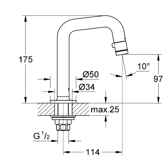 Svetleče kromirana površina GROHE StarLight je odporna na madeže in potemnelost, zato pipa ohranja videz nove tudi po dolgotrajni uporabi. Zaradi standardnega priključka 1/2" in vrtine 10,5 mm je namestitev preprosta v številnih kopalniških rešitvah.