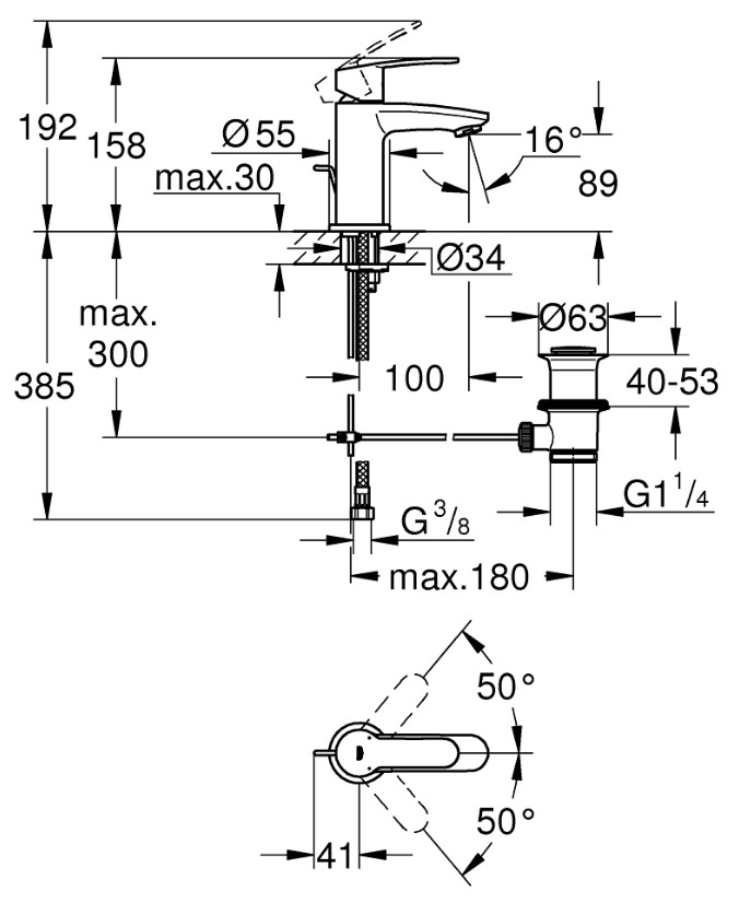 GROHE armatura za umivalnik Eurostyle Cosmopolitan, stoječa, je enoročna armatura za montažo na eno odprtino, zasnovana za udobno vsakodnevno uporabo in sodoben videz kopalnice. Opremljena je s kovinskim ročajem, perlatorjem in odtočno garnituro z dvižnim čepom 1 1/4". Gibljive priključne cevi omogočajo enostavno namestitev ter prilagodljivo povezavo z vodovodno napeljavo.
