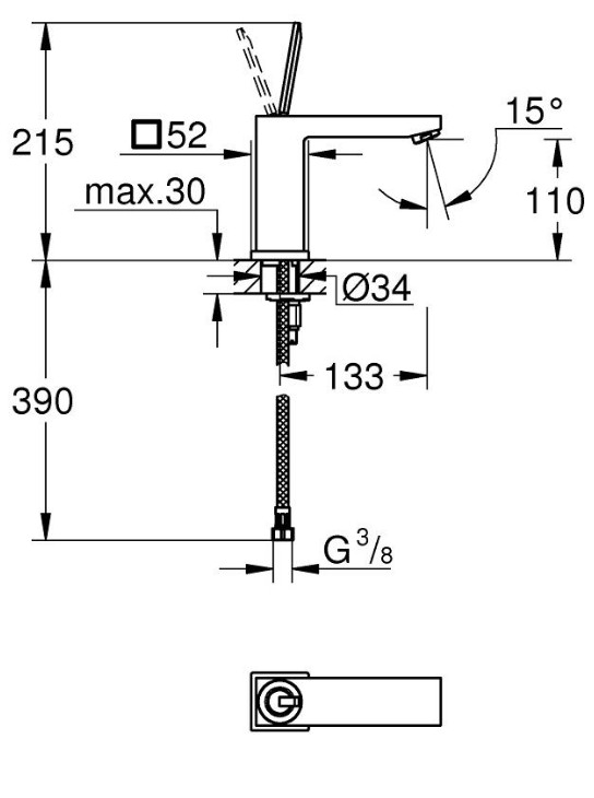 GROHE enoročna armatura za umivalnik Eurocube Joy je stoječa armatura velikosti M z značilno kubistično obliko in kovinskim ročajem. Namenjena je vgradnji na eno odprtino ter omogoča natančno upravljanje pretoka in temperature vode. Gibljive priključne cevi olajšajo montažo in zagotavljajo prilagodljivo namestitev na različne umivalnike.