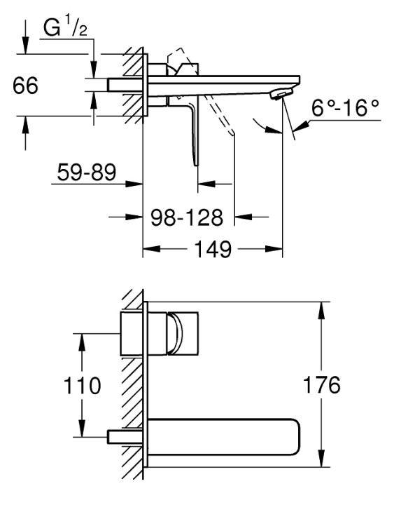 Montaža na steno z izlivom dolžine 149 mm omogoča čist in minimalističen izgled umivalnika. Več prostora okoli umivalnika olajša čiščenje in daje kopalnici moderen značaj.
