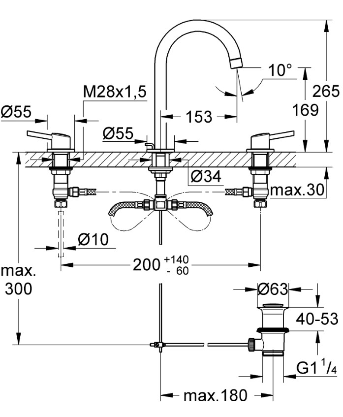 Gibljive priključne cevi, odporne na vodni tlak, ter odtočna garnitura z dvižnim čepom poskrbijo za enostavno montažo in zanesljivo delovanje umivalnika v kopalnici.