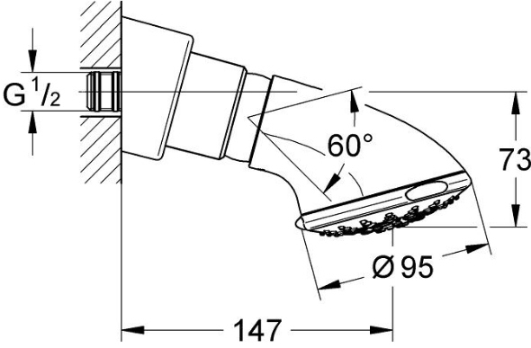 Kroglični člen omogoča nastavitev nagiba, predsestavljeno tesnilo na priključnem navoju pa olajša montažo. Napredne GROHE tehnologije zagotavljajo enakomerno razporeditev vode, zaščito pred pregrevanjem površine ter enostavno čiščenje silikonskih šob za daljšo življenjsko dobo prhe.