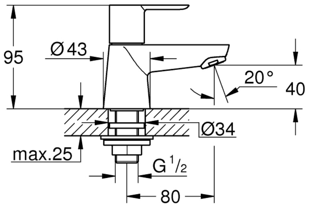 GROHE armatura za umivalnik BauEdge, stoječa, 20421000