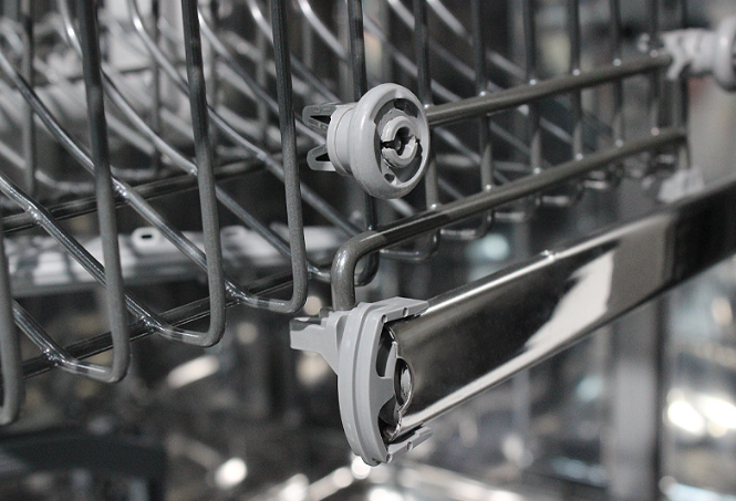 Gladki drsniki zgornje košare omogočajo lahkotno vstavljanje in jemanje posode, brez zatikanja.