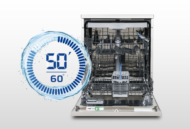 Gladko pomikanje zgornje košare QuickSlide, možnost odloženega zagona ter hitri programi, kot sta Super 50’ in QuickWash 30′, omogočajo hitro in učinkovito pomivanje. Napredne zaščitne funkcije, skriti grelni element in trojni filtrirni sistem pa zagotavljajo varno in dolgotrajno delovanje stroja.