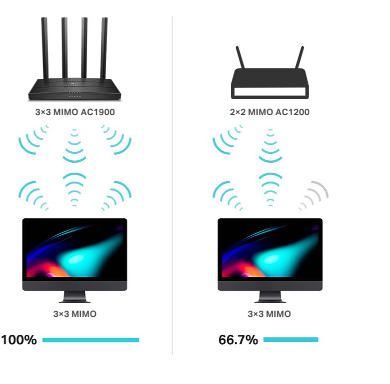 Tehnologija 3×3 MIMO omogoča hkratni prenos podatkov po treh tokovih, kar pomeni večjo prepustnost in boljšo izrabo omrežja, še posebej pri napravah, ki podpirajo 3×3 povezavo, kot so nekateri računalniki in prenosniki Mac.