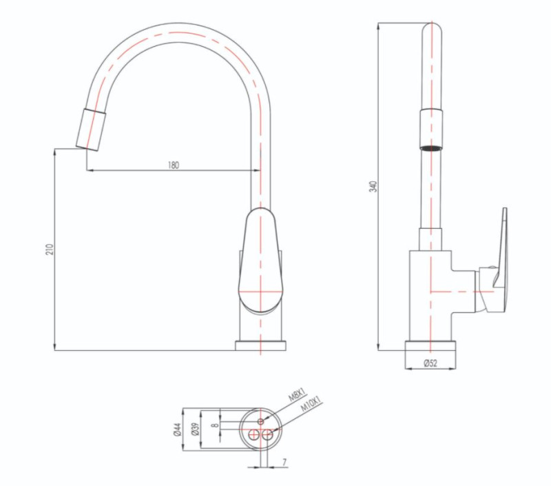 Armatura Blitz za pomivalno korito s silikonsko izlivno cevjo, ki se poljubno oblikuje po višini in tudi kot izliva. Dve priključni cevi 450 mm ter sistem za pritrditev.