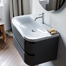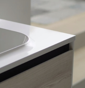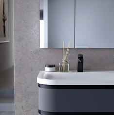 Za večje kopalnice je na voljo dvojna širina omaric, ki s seboj prinašajo mehko zapiranje, vse pa estetsko dopolnjujejo delno integrirani ročaji.