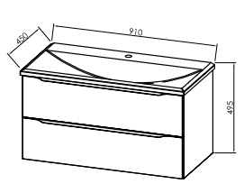 Oblikovno izpopolnjen umivalnik ostrih sodobnih form počiva na predalniku v kontrastnih notah osnovnih naravnih elementov z dvema predaloma s sistemom tihega zapiranja.