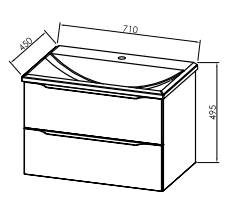Oblikovno izpopolnjen umivalnik ostrih sodobnih form počiva na predalniku v kontrastnih notah osnovnih naravnih elementov z dvema predaloma s sistemom tihega zapiranja.