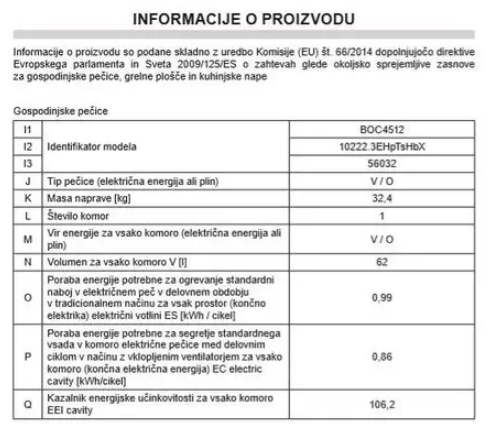- Osvetlitev pečice: 1 x halogenska žarnica