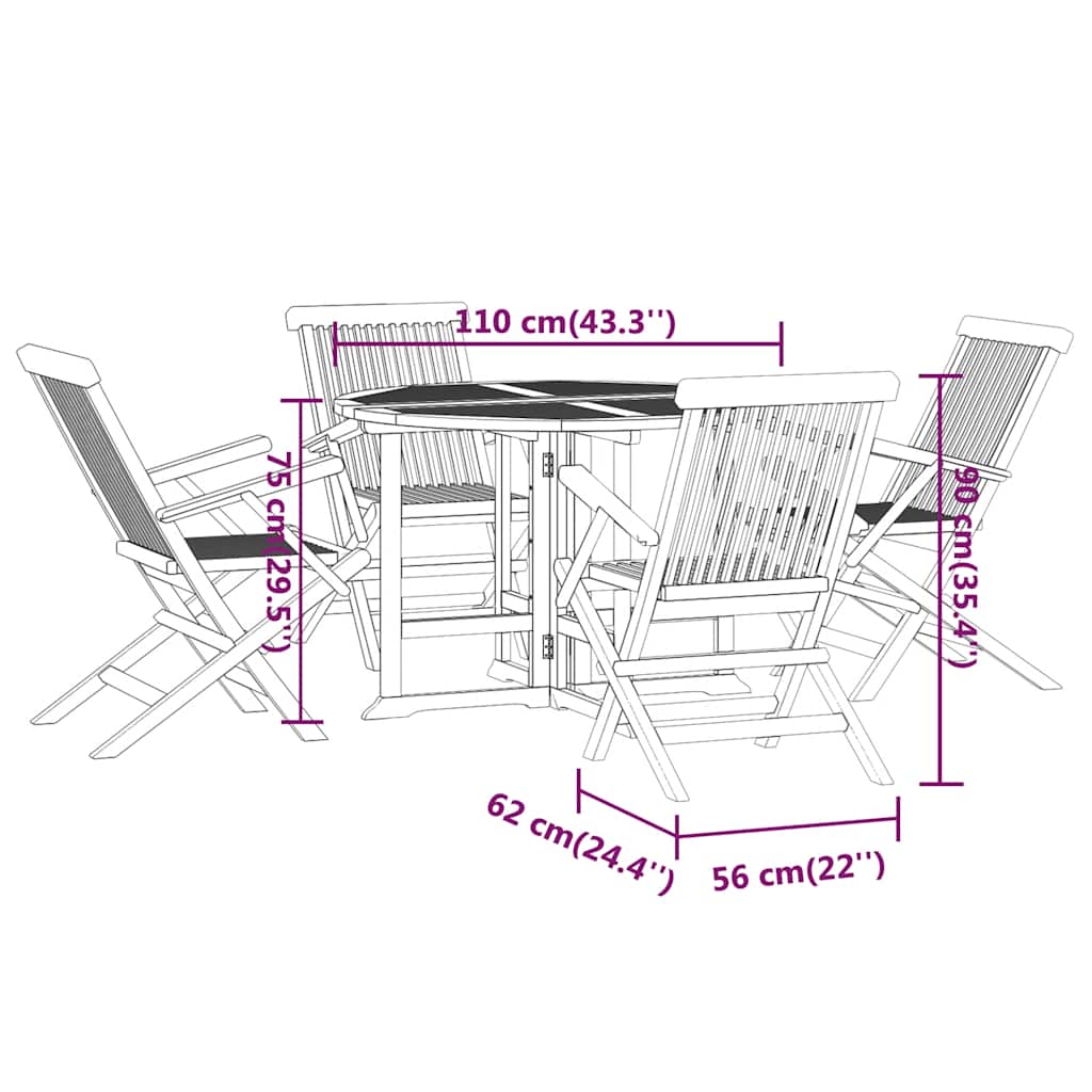 VIDAXL vrtna jedilna garnitura zložljiva, 5-delna, trdna tikovina