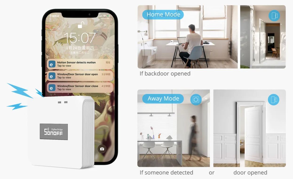 Most SONOFF upravlja protokol Zigbee 3.0 in je zasnovan za komunikacijo podatkov med napravami Zigbee in Wi-Fi za uresničitev pametnega nadzora in povezave.