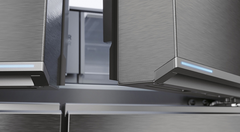 Družba Haier je svoj hladilnik oblikovala z veliko pozornostjo do vseh podrobnosti tako v zunanjosti kot v notranjosti. Zaključna obdelava proti prstnim odtisom, modre LED luči na vratih hladilnika, svetloba, ki odseva ime Absolute Ice na dozirniku za vodo in led, ter vgrajeni zaslon so bili zasnovani tako, da obogatijo vašo kuhinjo. Ročaji so brezšivno lasersko obdelani, elegantni in jih je mogoče povsem enostavno čistiti. Notranjost hladilnika je prav tako dobra kot zunanjost: konzolne police omogočajo bolj praktično spreminjanje položaja polic, saj jih ni treba v celoti odstraniti iz hladilnika, novo stojalo za vino pa omogoča večjo prilagodljivost z možnostjo shranjevanja do 6 steklenic.