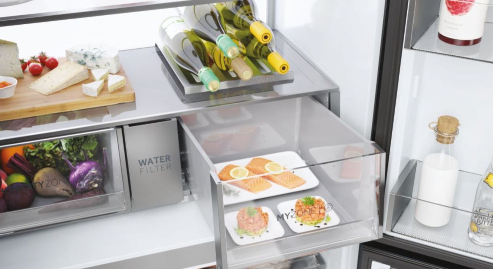 MyZone je rezultat Haierjeve predanosti za iskanje neprekinjenih izboljšav, nenehnih inovacij in stalnega preseganja pričakovanj naših strank. Omogoča vam hitro in enostavno nastavitev temperature v predalu, glede na trenutne potrebe za hlajenje. Z enim preprostim dotikom prsta izberite primerno temperaturo za živila, ki jih shranite.