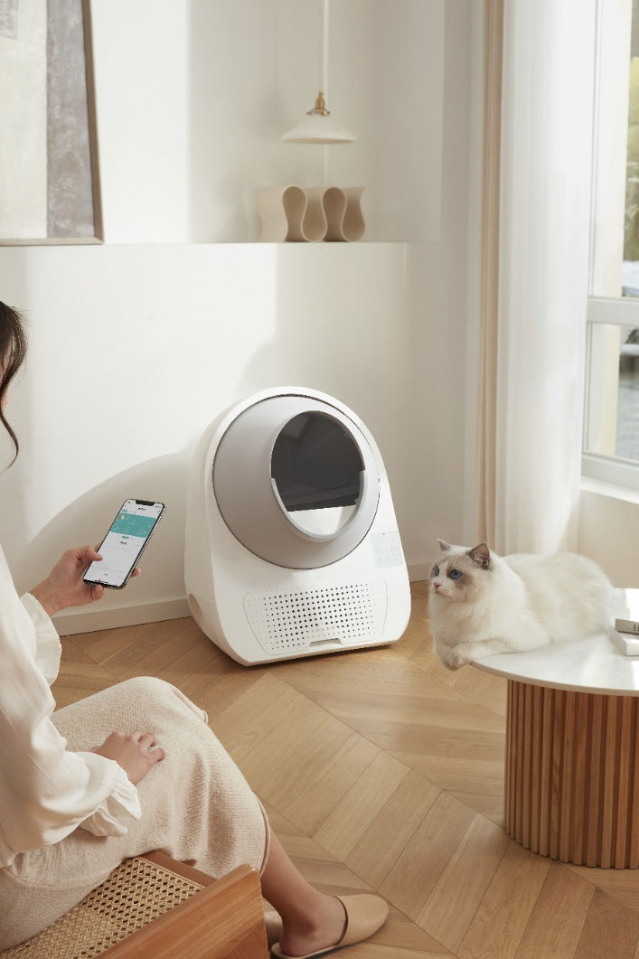 Catlink Scooper Pro združuje zmožnost pometanja smeti z enim klikom, ogled nivoja stelje ter merjenje temperature in vlažnosti z velikodušnim 13-litrskim košem za smeti, ki pokriva vse potrebe vaše mačke.