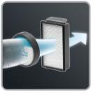Napredni mono-ciklonski sistem omogoča visok nivo izločanja prahu iz zraka. Dva nivoja filtracije – penasti filter pred motorjem in visoko učinkovit filter na izhodu zraka – zadržujeta tudi najmanjše prašne delce.