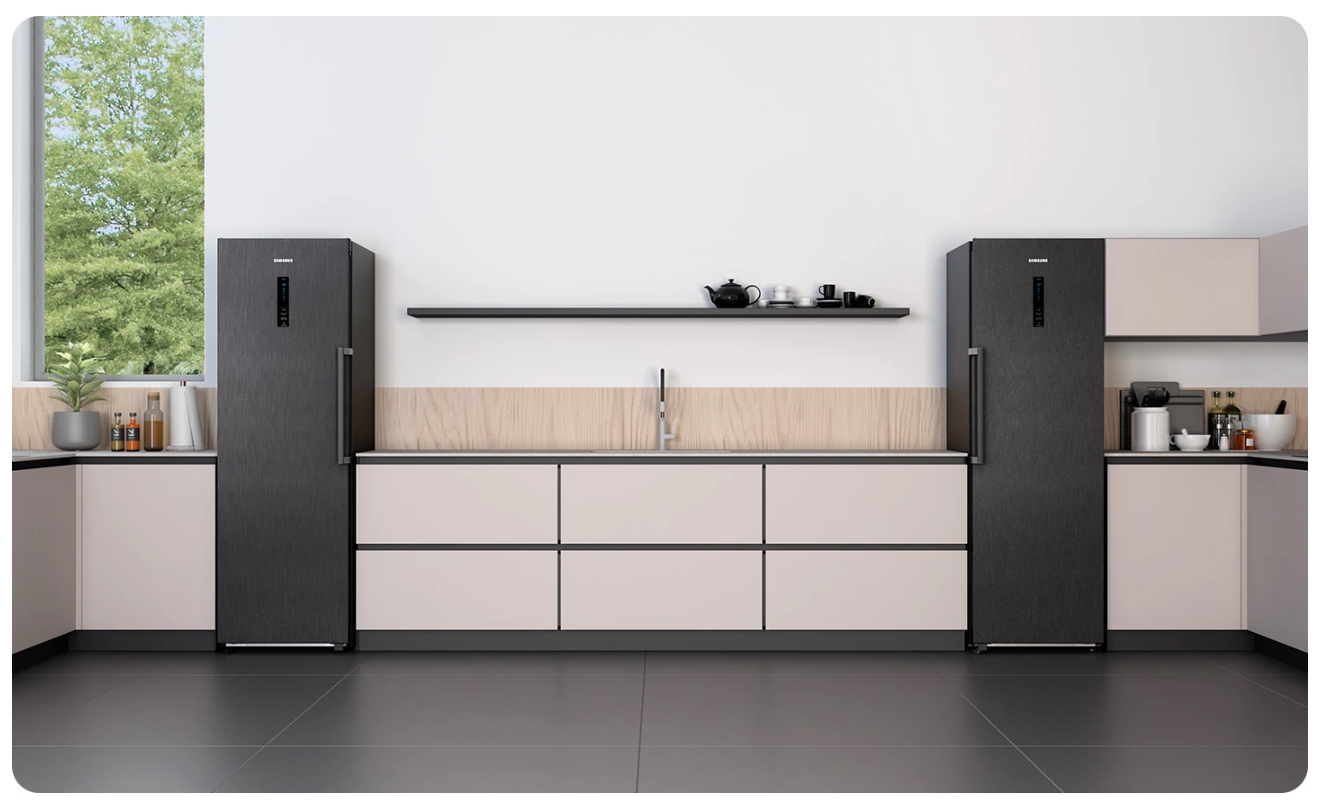 5 let garancije za izbrane modele Samsung hladilnikov, pralnih strojev, vgradnih kuhinjskih aparatov, sušilnih in kombiniranih pralno-sušilnih strojev, kupljenih od 13. 1. do 31. 12. 2025,