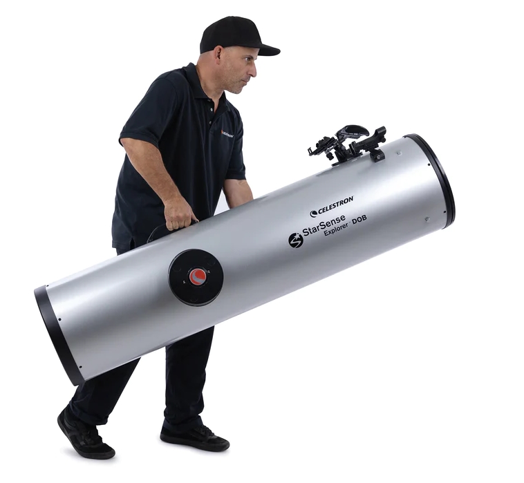 Prevoz teleskopa StarSense Explorer Dobsonian je enostaven zaradi ergonomskih ročajev za prenašanje, ki se nahajajo na točki ravnotežja tubusa in podstavka. Priložena sta tudi protiprašna pokrova za sprednji del cevi in fokusator.