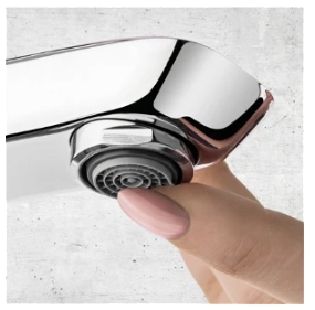 Silikonski aerator prezračuje vodni curek, hkrati pa omogoča enostavno odstranjevanje vodnega kamna – samo obrišite s prstom njegove silikonske robove.
