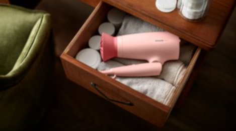 Zaradi kompaktne zasnove z zložljivim ročajem sušilnik za lase enostavno zapakirate, shranite in vzamete kamor koli s seboj.