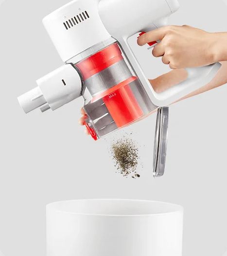 Posoda za prah se odpre s pritiskom na gumb, kar omogoča hitro in higienično praznjenje brez neposrednega stika z umazanijo.