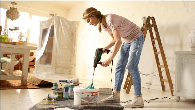 Pri nizkih hitrostih se vrtalnik lahko uporablja tudi za mešanje barv ali drugih tekočih in pastoznih materialov z ustreznim nastavkom, kar razširi uporabnost orodja pri različnih opravilih v domu in delavnici.