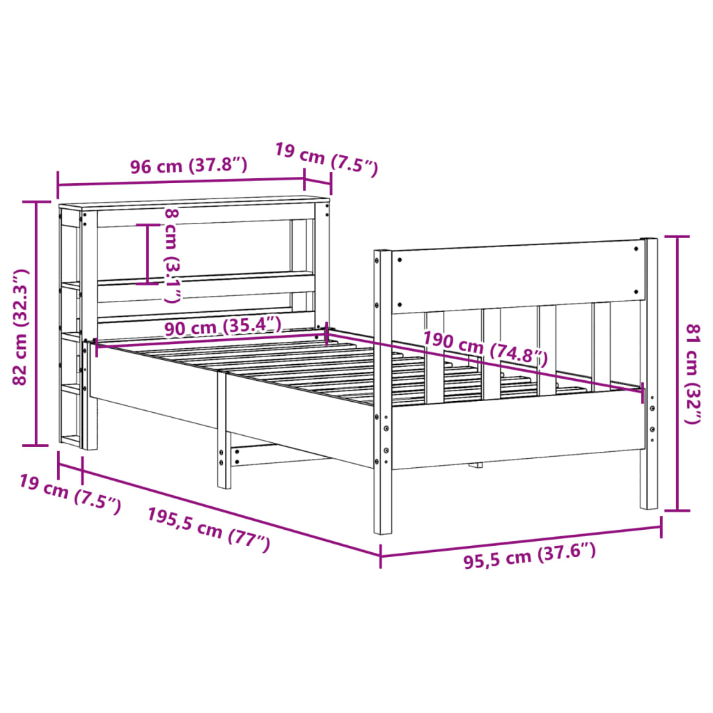 VIDAXL Posteljni okvir brez vzmetnice 90x190 cm trdna borovina