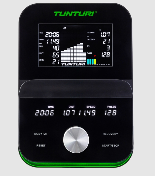 Eliptični trenažer C65 ponuja 48 stopenj upora, kar omogoča prilagoditev vadbe glede na vaše potrebe. Na voljo je 26 programov, vključno z 12 vnaprej nastavljenimi profili, 4 programi nadzorovanimi s srčnim utripom, programi po času, vatih, kalorijah in hitrosti, ter BMI in meritev telesne maščobe. Poleg tega lahko nastavite 4 uporabniške programe, izberete ročni način ali izvedete program za regeneracijo s fitnes testom, ki po vadbi izmeri hitrost padanja srčnega utripa in oceni vašo telesno pripravljenost.