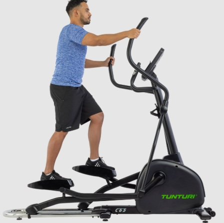 Eliptični trenažer C65 ima tako fiksne kot premične ročaje. Fiksni ročaji so manjši, nameščeni bližje skupaj in imajo vgrajene senzorje srčnega utripa, kar omogoča osredotočenost na vadbo spodnjega dela telesa. Za najbolj natančno merjenje srčnega utripa priporočamo uporabo prsnega pasu. S premičnimi ročaji pa vključite tudi zgornji del telesa, saj pri vadbi aktivirate mišice rok in ramen.